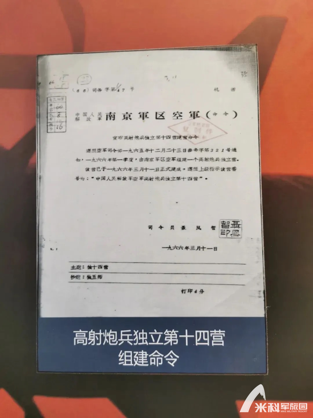 1966年3月11日,地空导弹兵(绝密543)第十四营批准在南京成立