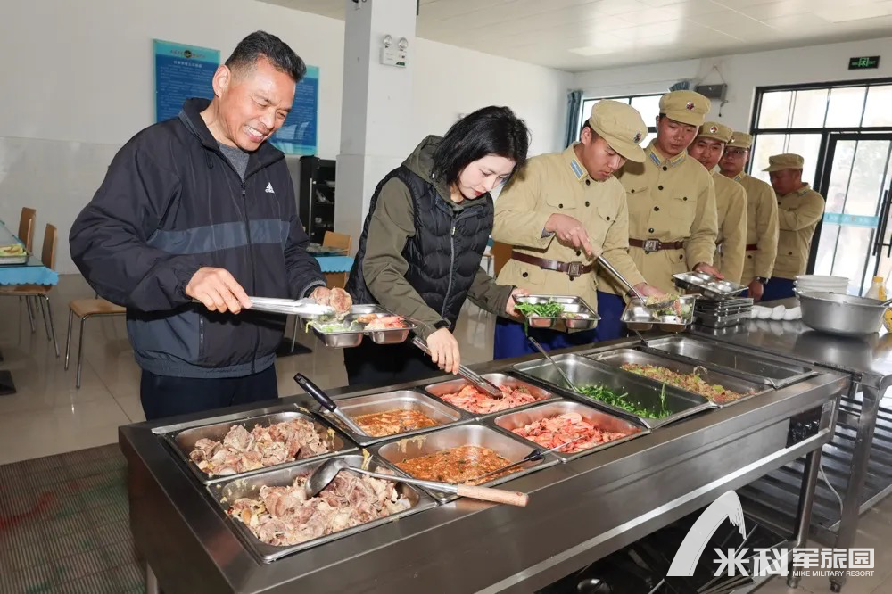 (中午大家有幸尝到了部队军旅餐)
