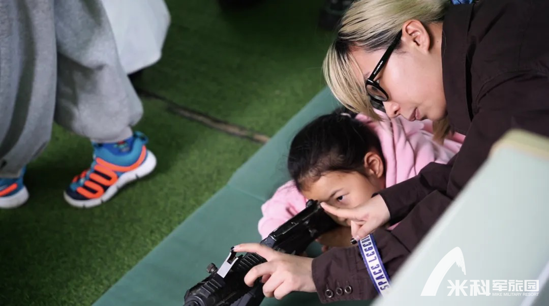 在激光模拟射击区,孩子们专注瞄准,父母则在旁鼓励指导,仿佛成了真正的“战友”。