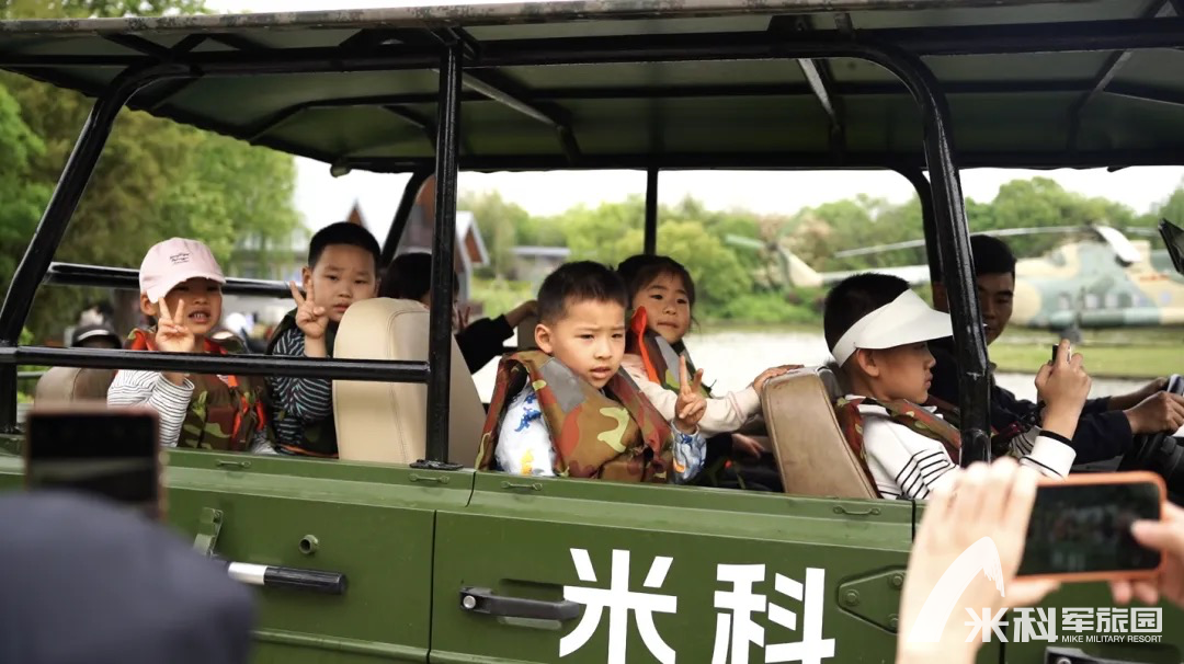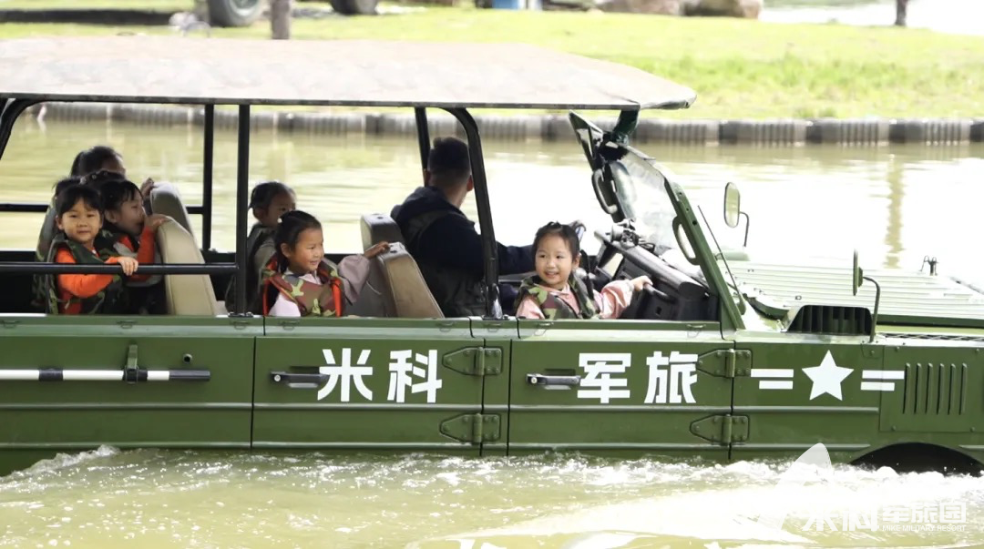 随后,真正的“硬核”体验到来!在教官的安全指导和家长陪同下,孩子们兴奋地体验了两栖运兵突击车和武装冲锋舟。车辆从陆地冲入水面的那一刻,溅起的水花与全车的惊呼、欢笑交织,成为最刺激的亲子记忆。